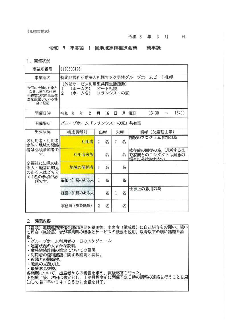 【ピート札幌・フランシスコの家・
